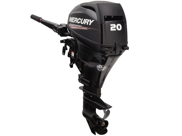 The Mercury 20 HP outboard motor model 20ELH comes with the convenient features you want: Electric start motor, 20 inch long shaft, multi-function tiller handle, heavy duty transom bracket, and vibration absorbing mounts. The intake manifold design provides fast acceleration, while the large displacement and prop provide planes quickly planes your boat. Between the two, the 124 lb Mercury 20 HP is going to get you where you need to be faster. Mercury Marine Outboards are legendary for reliability and the Mercury 3 year factory warranty make this outboard motor an affordable engine!