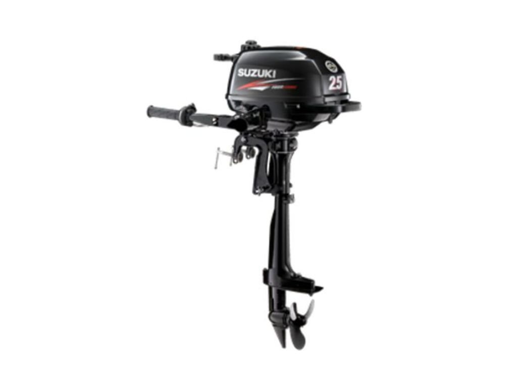 Outboard Motor Suzuki DF2.5 portable Outboard Motor is the smallest Suzuki 4-stroke to date. Weighing just 30 pounds, the DF2.5 is the lightest Suzuki 4-stroke motor ever built. Suzuki is also proud to note that the DF2.5 meets the rigorous EPA 2010 and CARB 3-Star Ultra Low emissions standards. A 2.5 HP single cylinder OHV 4-stroke engine, with 4.15 cu. in. displacement, generates plenty of power for small tenders and inflatables.